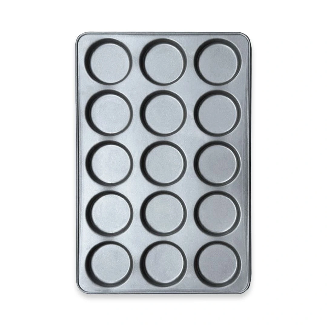 Su diseño estampado completo con 15 moldes permite hornear panes de hamburguesa de aproximadamente 10 cm de diámetro por tanda, ayudando a mantener uniformidad en el tamaño de cada pieza y optimizando el uso del horno.
