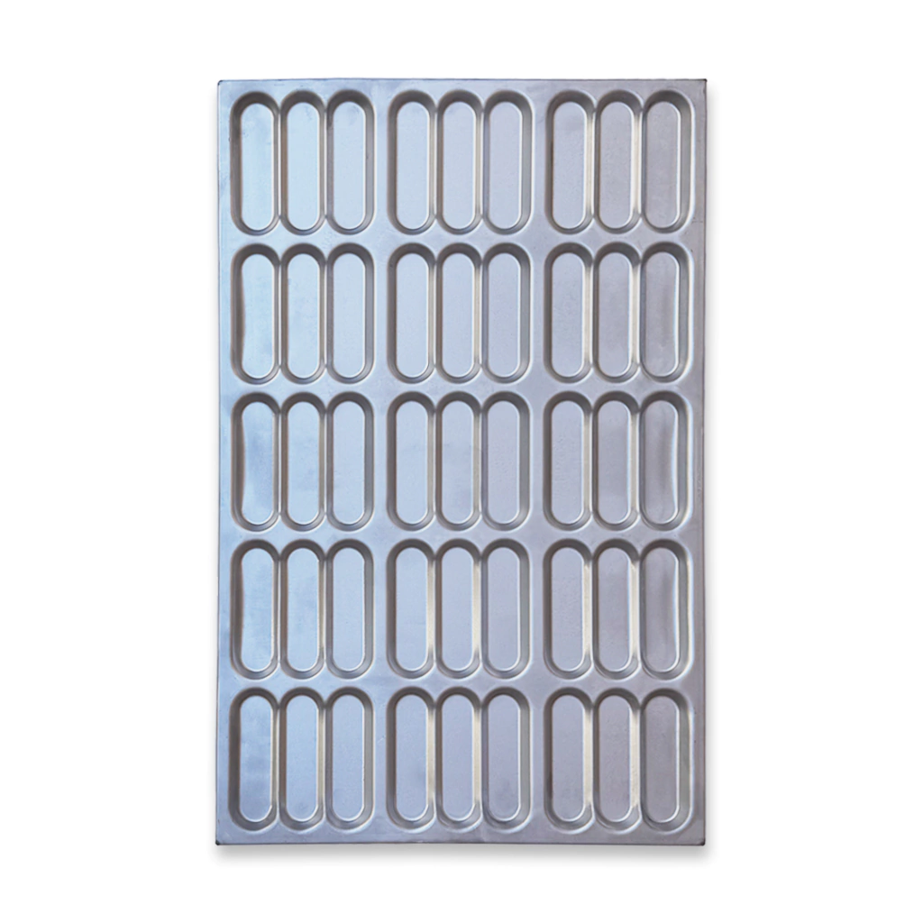 La bandeja panchera de estampado completo está diseñada para la producción organizada de pan para pancho chico, permitiendo elaborar múltiples unidades en una sola cocción. Su formato estampado facilita la repetición uniforme de piezas, optimizando el trabajo en panaderías y cocinas gastronómicas.